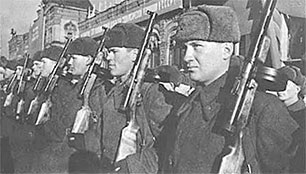 В военные годы на фабрике заготавливаются рукоятки для автоматов.
